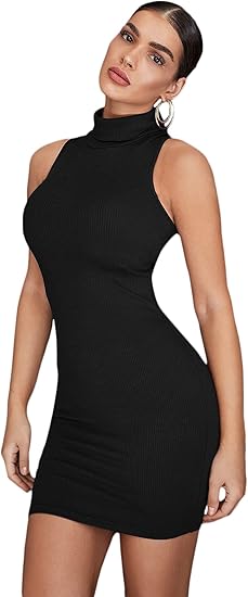 Women's Sleeveless Turtleneck Party Mini Bodycon Dress