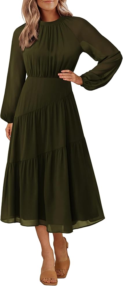 Women's Fall Dress Long Sleeve Empire Waist Tiered A Line Swing Flowy Midi Dress