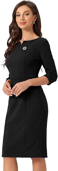 Dress for Women's 3/4 Sleeve Wear to Work Business Sheath Dresses