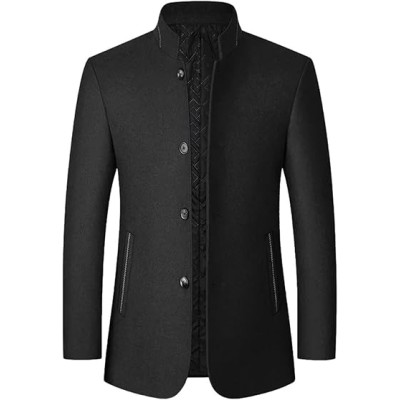 Men Single Breasted Chinese Style Stand Collar Solid Coats Business Casual Woolen Jacket