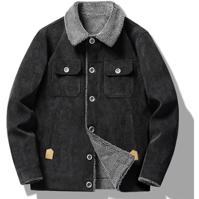 Corduroy Jacket Men's Winter Plush Thickened Work Jacket with Lamb Wool(XL Code)