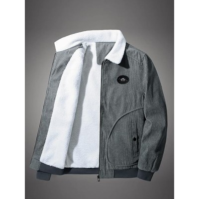 Corduroy Jacket Men's Winter Plush Thickened Work Jacket with Lamb Wool(XL Code)