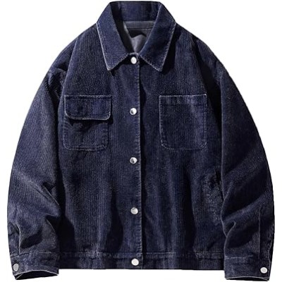 Men's Coat Blue Vintage Spring Autumn Corduroy Turndown Collar Workwear Loose Jacket for men