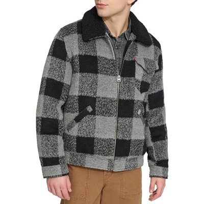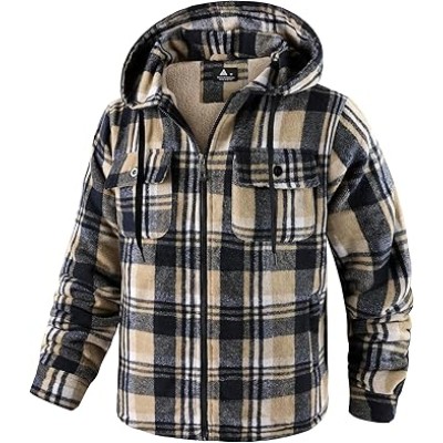 Mens Plaid Hoodies Winter Zip Up Fleece Jacket Sherpa Fleece Lined Warm Flannel Jacket Coat