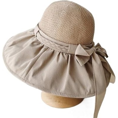HBJWOV Sunscreen Tied hat, Sunshade hat, Female Bow tie, Large Brim hat
