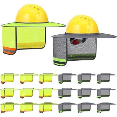 20 Pcs Hard Hat Sun Shade Full Brim, High Visibility Sun Visor Neck Shade with Reflective Strip, Hard Hat Accessories for Men