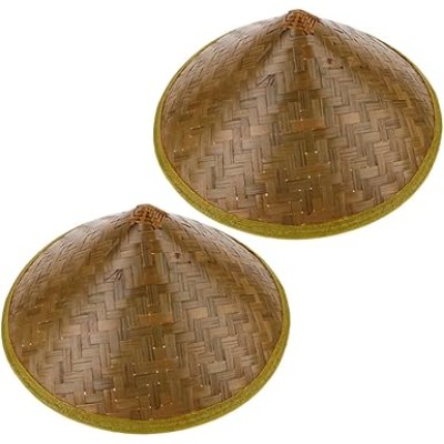 2pcs Japanese Straw Hats for Cosplay and Dance Handmade Garden Sunshade Hats Breathable Light Brown Rice Farmer