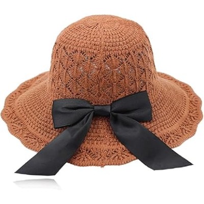 Hats for Women Knitted Breathable Foldable Sun Hat with Bow Sun Protection Sunshade Beach Hat Cap