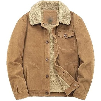 Men's Autumn Denim Jacket,Loose Fit Workwear Casual Coat,Fleece Lined Thickened Top