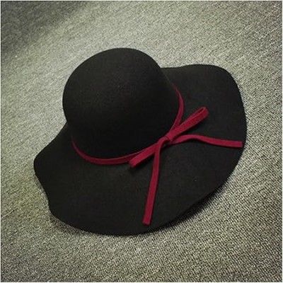 Women's top hat Autumn Winter Woolen Big Brim hat Travel Sunshade Bow hat(E)