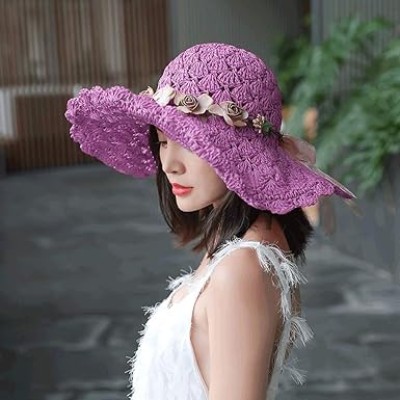 12 PCS Women's Wide Brim Straw Hats Floppy Sun Hat Foldable Multicolor Summer Beach Sun Cap UPF 50+